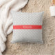 Motif pois gris clair et blanc, étiquette de monogramme avec ruban rouge corail