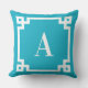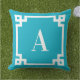 Caraibes azur et décoratif blanc de style grec de style carré frontière avec un monogramme serif moderne. Customisez ce design contemporain en choisissant votre combinaison de couleurs préférée. Modifiez le style, la taille ou la couleur de la police selon vos besoins. Associez cette teinte de bleu à votre décor de maison. Transférer cette conception ? Vérifiez la catégorie Greek Key dans mon magasin pour les autres formes et tailles d'oreillers... ainsi que d'autres cadeaux de décoration maison.