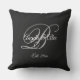Oreiller carré élégant d'anniversaire de mariage avec le monogramme du couple dans un script de calligraphie gris et blanc fantaisie.