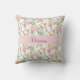 Coussin Monogramme de nom de fleur sauvage aquarelle verte