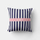 Coussin Monogramme de nom rose rayure bleu marine blanc