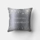 Un coussin pour une Quinceañera, chambre pour filles de 15 ans. Un arrière - plan faux argent avec de la poussière de parties scintillant fausse. Le texte : Quinceañera est écrit en blanc avec un grand script de style à la main moderne. Personnalisez et ajoutez un nom.