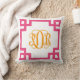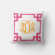Coussin Monogramme de script de clé grecque rose et orange