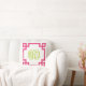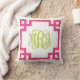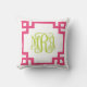 Coussin Monogramme de script de clé grecque rose et verte