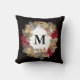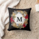 Moderne, décoratif RICH BLACK Christmas wreath THROW PILLOW avec MONOGRAM personnalisable au centre afin que vous puissiez remplacer par votre propre initiale. Dans l'arrière - plan, il y a un subtil message carrelé qui dit BONNES FÊTES. D'autres coussins et couleurs de Noël sont disponibles dans les collections CHRISTMAS par Berean Designs.