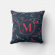 Beau coussin avec votre monogramme et une élégante illustration de baies dessinée à la main dans le rouge vif et gris pastel sur un arrière - plan bleu marine. Si vous souhaitez un design en différentes couleurs ou sur des produits correspondants, veuillez nous contacter à l'adresse aquipoppy@icloud.com