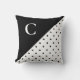 Coussin Monogramme en noir gras sur Motif en pois blanc