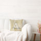 Coussin Monogramme et initiale rayés à huile blanche et or