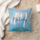 Coussin Monogramme et nom personnalisés modernes Bleu