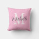 Coussin décoratif Monogramme et nom rose vif à la mode