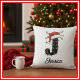 Coussin Monogramme Famille Antlers de Noël Santa Hat