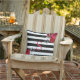 Cet élégant design présente des bouquets vintages de fleurs rouges et argentées dans deux coins sur un arrière - plan rayé noir et blanc tendance. Personnalisez-le avec votre initiale en police serif rouge.