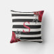 Coussin Monogramme floral argenté rouge Blancs noirs