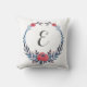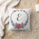 Coussin Monogramme floral des roses rouges | d'aquarelle