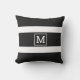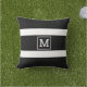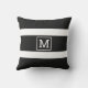 Un coussin à rayures noir et blanc simple et classique à personnaliser avec votre monogramme.