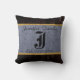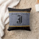 Coussin Monogramme Gris Russe Burlap Linge Bois Look