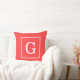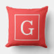 Coussin Monogramme Initial Cadre Rouge Corail Blanc