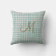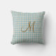 Oreiller jeté à carreaux bleu et brun monogrammé avec votre initiale en brun. Cadeau idéal ou pour donner un coup de neuf à votre propre maison.