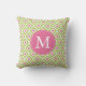 Coussin Monogramme Lime vert Diamants roses Ikat Motif