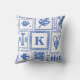 Monogramme Moderne Bleu Blanc Abstrait Motif Jeu Coussin d'oreiller dispose d'un motif d'objets abstraits avec votre monogramme personnalisé au centre. Parfait pour décorer la maison ou comme un cadeau pour elle pour Noël, anniversaire, Fête des Mères et plus que petite amie, soeur, mère, amis. Créé par Evco Studio www.zazzle.com/store/evcostudio