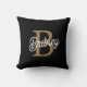 Coussin Monogramme moderne élégant Nom Black Gold Script