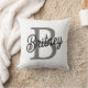 Coussin Monogramme moderne élégant Nom noir Gris noir Scri