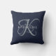 Coussin Monogramme moderne élégant Script Marine Bleu