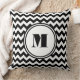 Coussin Monogramme moderne Motif Chevron noir et blanc