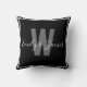 Coussin Monogramme moderne noir blanc bordé de deux bordur