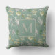 Moderne et élégant décorateur botanique jetez l'oreiller avec des feuilles verts et argentés sauge et le feuillage et la verdure. Customisé avec votre monogramme/initial.