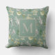 Coussin Monogramme moderne Sage Vert Silver Feuille Foliin