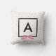 Chic coussin monogramme avec un carré noir bordé d'un ruban rose contre un motif à pois noir et blanc. Il fait de grands cadeaux pour la famille et les amis ou pour vous-même de décorer votre maison ou chambre d'hôtes. Personnalisez-le en remplaçant le texte de l'espace réservé. Pour plus d'options comme changer la police et sa taille, cliquez sur le bouton "Customiser". *Veuillez noter que le filigrane Zazzle qui apparaît dans l'aperçu du zoom n'apparaîtra PAS sur le produit imprimé final. © Bois de rose et agrumes