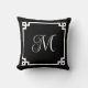 Coussin Monogramme noir et blanc Bordure de clé grecque