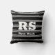 Coussin Monogramme & nom blanc gras, lignes gris clair sur