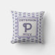 Ce coussin monogramme est une excellente façon d'ajouter un accent coloré dans votre maison ou de créer une tenue de maison spéciale pour un mariage ou un chauffage domestique. Un motif de pois gris bleu apparaît contre un arrière - plan bleu clair à l'avant et à l'arrière de ce coussin. La lettre "P" est présentée dans un carré avec le nom de famille et l'année. La lettre, l'année et votre nom peuvent être personnalisés rapidement et facilement. Design original - C. McGouldrick