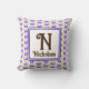 Ce coussin monogramme est une excellente façon d'ajouter un accent coloré dans votre maison ou de créer une tenue de maison spéciale pour un mariage ou un chauffage domestique. Un motif à pois bleu apparaît contre un arrière - plan beige à l'avant et à l'arrière de ce coussin. La lettre "N" est inscrite dans un carré avec le nom de famille. La lettre et votre nom peuvent rapidement et facilement être personnalisés. Design original - C. McGouldrick