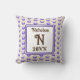 Ce coussin monogramme est une excellente façon d'ajouter un accent coloré dans votre maison ou de créer une tenue de maison spéciale pour un mariage ou un chauffage domestique. Un motif à pois bleu apparaît contre un arrière - plan beige à l'avant et à l'arrière de ce coussin. La lettre "N" est présentée dans un carré avec le nom de famille et l'année. La lettre, votre nom et l'année peuvent rapidement et facilement être personnalisés. Design original - C. McGouldrick