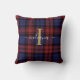 Coussin Monogramme Nom Plaid Rouge Violet Rustique Tartan