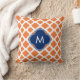 Coussin Monogramme Orange et Royal Blue Quatrefoil