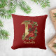 Coussin Monogramme Orné Personnalisé I Noir Rouge Or