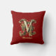 Coussin Monogramme Orné Personnalisé M Noir Rouge Or