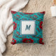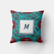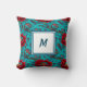 Ajoutez une touche de luxe vibrant à votre maison avec cet étonnant coussin personnalisé à monogramme. Doté d'un motif botanique complexe de fleurs rouges audacieuses et de motifs ornés sur un fond sarcelle profond, ce design mélange parfaitement l'esprit bohème avec une élégance sophistiquée. Le centre présente un carré blanc propre pour votre initiale personnalisée (illustré avec un M bleu stylé), ce qui en fait une pièce vraiment unique.