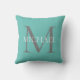 Coussin Monogramme personnalisé et nom Turquoise clair