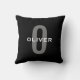 Coussin Monogramme Personnalisé Noir Gris Blanc Nom
