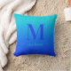 Coussin Monogramme personnalisé & nom Turquoise à Blue Gra
