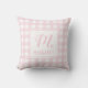 Bébé rose et blanc grand En vichy jetez oreiller pour la chambre des enfants ou des filles. Facile à customiser rose pâle grand chalet de style plaid coussin de style accent avec monogramme, petit coeur et les filles nom dans moderne sans serif typeface. Ce coussin mignon est une belle décoration et une idée cadeau en rose girly avec charme de pays. Design © yBEE PAPERIE #ybeepaperie #pinkginghammonogrampillow #petite-fille #girlymonogramnamepillow
