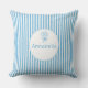 Coussin Monogramme Préppy Rayure Blanche Bleue Fantaisiste