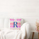 Coussin Monogramme rose chaud brillant Orange rétro Flower