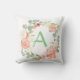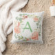 Une couronne florale rose et verte pastel entoure votre initiale. Le style et la couleur de police de monogramme peuvent être personnalisés à vos détails. La couleur au dos du coussin peut être changée.