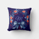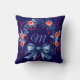 Coussin d'accent Monogram Blue Red Rose personnalisé.